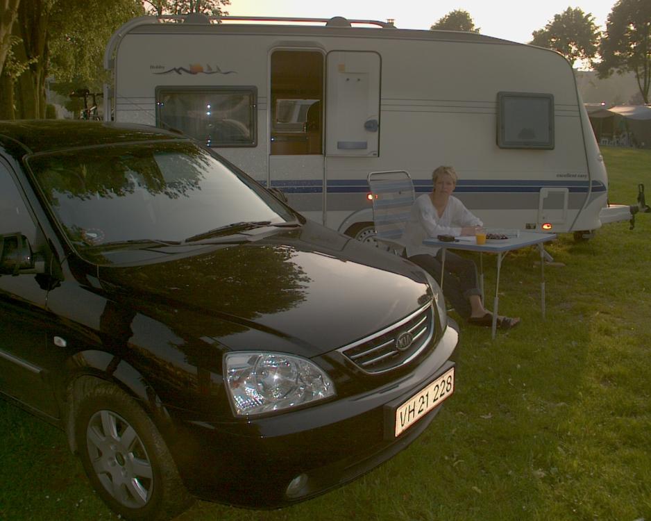 Vi kørte i en Kia Carens CRDI 2,0 diesel, som trakk aldeles utmerket. Se dieselforbruk under faktaopplysninger. Campingvognen var en Hobby Excellent Easy UFe med dobbeltseng, kjøkken, badeværelse og sittegruppe. Solseil fra Isabella Les mer her www.isabella.net Sykkel er av fabrikat Mosquito Xplicit. www.mosquito.dk Den lille sykkel er bare tul.
