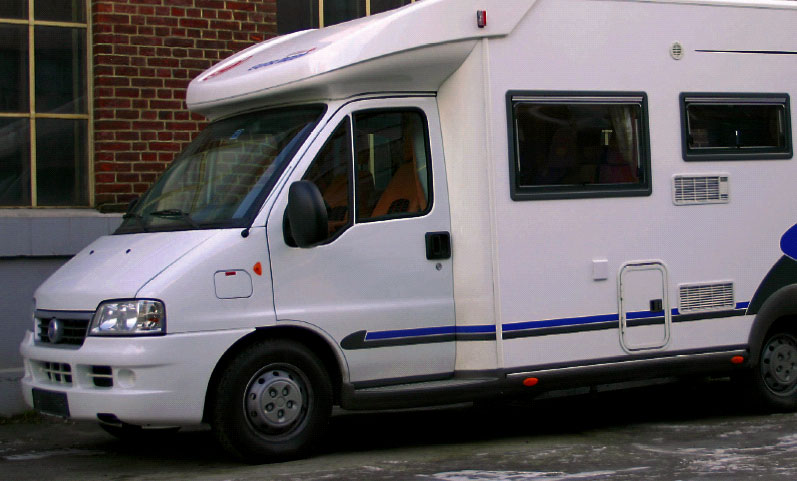 Om ikke Eura Mobil så langt har vært blant bestselgerne her på berget, så er de store nok i Tyskland. Over førti modeller, fordelt på fire serier skulle kunne oppfylle de fleste ønsker. Sport og Activa er to serier med alkovebiler hvor Sport er den rimeligste, beregnet på “einstieger” som tyskerne kaller en som er fersk i denne ferieformen. Så kommer “vår” serie, Contura som er halvintegrerte biler og til slutt Integra som selvfølgelig er de integrerte. En trend er det og at flere og flere bobiler får glassfiberhud utvendig. Så også Eura Mobil. Tak og vegger holdes sammen av en patentert list som igjen dekkes helt av en plastprofil for å holde fuktighet borte. Bilen er hvit med sparsom, fin dekor. Det er spandert lakk på støtfanger og vinduer fra Seitz. På høyre side finner vi to vinduer, døren, luke til bagasjerom og gasskasse. Bak på bilen er det et vindu og på venstre side tre vinduer og en liten luke til sofaen.