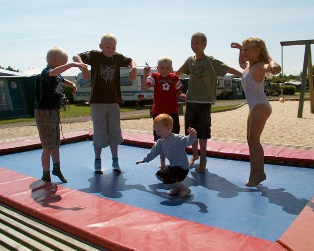 Til spørsmålet om, hvordan de ville feriere, dersom de ikke skulle på camping svarer Jakob, ”jeg ønsker meg mest av alt en bobil, så ville jeg kjøre hele verden rundt og bare bo i den. En av mine venners foreldre har en og det er bare helt topp”, Martin sier at han vil bare fortsette med å dra på camping, fordi mange av hans klassekamerater er misunnelige på han. ”Vi har campingvognen stående fast her på Vejlby Fed Camping, så vi er her ute nesten hver weekend, og hvem reiser så ofte og det til et sted med swimmingpool og egen strand”, forteller Martin stolt.Vi sitter rett ved siden av trampolinen og plutselig avbryter femårige Jonathan, som ellers ikke har sagt noe. Han er helt overivrig for å fortelle, at han på trampolinen kan hoppe fra mølle til mølle. Jeg er ikke helt med på, hva han snakker om, så jeg stopper samtalen og sier, at det må han vise oss. Han blir henrykt og hopper over på trampolinen fra mølle til mølle, noe som vi så finner ut at er fra stående til rompe til stående til rompe osv.. ”Flott” smiler jeg sammen med de andre, som nå er i ferd med å bli klar til å leke, så vi tar farvel og i løpet av sekunder, er de alle forsvunnet til hvert sitt favorittsted på campingplassen.