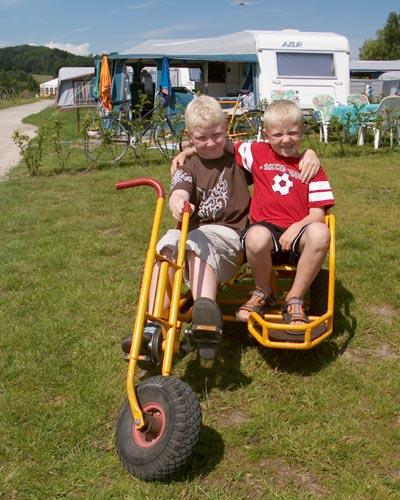 Det er rett før de kjører på meg for de ser ikke annet enn sin beste lekekamerat litt lenger nede i veien. ”Jakob, Jakob, vent på oss”, roper brødrene Emil og Martin høylytt, så man ikke er i tvil om, at de mener det. De har lært hverandre å kjenne på campingplassen. De bor henholdsvis i Middelfart og Fredericia, men treffes ikke, når de er hjemme og foreldrene kjenner stort sett heller ikke hverandre. Guttene derimot er uadskillelige.