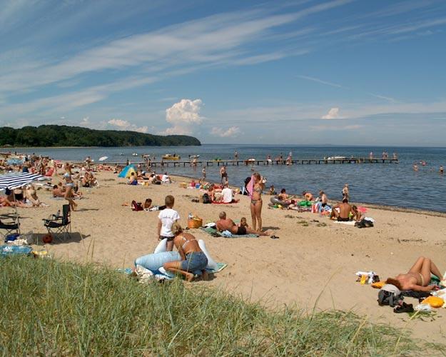 Campingplassen ligger helt ned til en av Fyns mest barnevennlige strender.