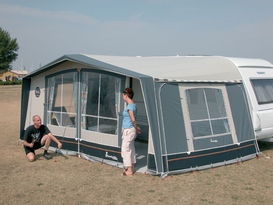 Isabella-fabrikken har nemlig sendt ut en spennende nyskapning på markedet, forteltet Commodore Alpha. Overtiden vil skyldes at modellen, på grunn av sin spesielle konstruksjon og design, ikke er så helt lett å kopiere.Fronten er nydesignet med høye buede vinduspartier i fronten og et utheng, som er brett på midten og går helt ned til bakken på sidene. De to frontpartiene kan for øvrig rulles helt av, uten at teltet mister sin stabilitet takket være en ny oppfinnelse, en sterk bardunline med stormstropp.Den har fått navnet ”Typhoon” som et uttrykk for, at stormstroppen virkelig holder forteltet på plass, selv når værgudene viser seg fra sin mest brutale side. Den er i motsetning til mange andre stormoppspenningssystemer veldig lett å betjene i kraft av en innebygget edeltre-bardunstrammer.Commodore Alpha vil med sin dybde på tre meter helt sikkert falle i smak hos mange caravanister. I hver sideseksjon kan man selv velge, om inngangsdøren skal være inne ved campingvognen eller ute ved fronten. Høyre side er for øvrig utstyrt med et åpningsbart myggnettvindu.Også fargevalget er helt nytt. Gavlene er tweedfargede, fronten høyfarget og frontbunnen i et karakteristisk sort design med en oransje dekorasjonsstripe.Takduken har fått en ny beige farge, som gir et varmt og hyggelig lys i forteltet.Den stigende interessen for tilbygg har fått Isabella til å konstruere et helt nytt, stort tilbygg i samme design som Alpha-modellen. Tillbygget har mattede vinduer og to inngangsdører i fronten med myggnettsutlufting i midten.Innvendig er forteltet utstyrt med et nytt gardindesign ”Toscana”, som matcher teltdukens nye fargedesign.Av ekstrautstyr kan nevnes dørmarkise til gavlene, et frontsolseil, som fungerer som en overdekket terrasse samt takrenner i aluminium.