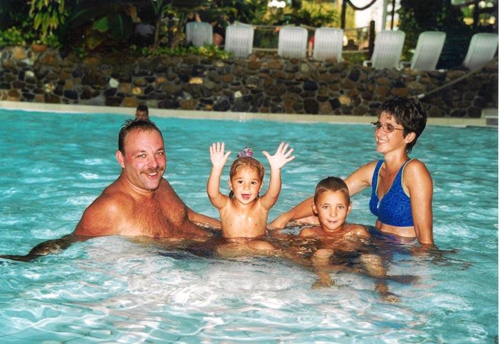 Etter frokost gikk vi en tur med Mathias i barnevognen. Folk hygget seg foran sine campingvogner, bobiler og telt. Nede ved den 35,5 ha store kunstig anlagte sjøen var et par jenter i ferd med å bygge sandslott. Fra det tropiske badelandet lød gledestrålende hyl fra barn i full gang med vannkamp. På scenen ble barna underholdt av klovner med narrestreker. Og slik kunne jeg holde på. Alle hygget seg. Vi avsluttet dagen på campingplassens restaurant med en runde solid og velsmakende wienerschnitzel.