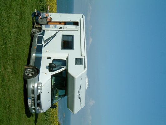 Bobilen er stor og romslig, noe som gjør at det er god plass til alle passasjerer. Spesielt sittegruppen er fantastisk, når familien skal samles til måltider eller annet hyggelig samvær. Dersom man er mye på farten og bruker toalettet og badet mye i sin bobil, er løsningen her helt ideell. Vi kjørte mye og den er lett å komme rundt med. Skulle man forlange noe, måtte det vært litt mer komfort i førerhuset. Kjøkkenet er ikke så stort, men stort nok – også selv om man er flere til måltidene. Det kan saktens løses og ellers er det jo en smaksak, hvordan plassen skal prioriteres.Reiseartikkelen fra Normandie kan du finne under ”Ferie i Utlandet” og ”Frankrike”. Det er en helt annen historie. God fornøyelse.