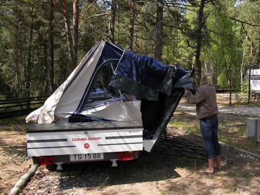 Det kan sies veldig kort. Vi elsker å sove i telt, men må også innrømme, at vi gjerne vil ha mer komfort. Med all respekt for campingvogner, så er det ikke noe for oss.Det å sove under teltduken betyr for mye, og at den er så lett å kjøre med og slå opp. Det er en flott måte å reise på.