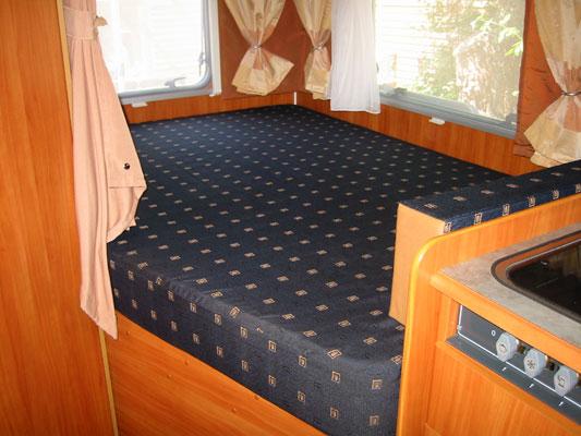 Den såkalte oppholdsstuen er plassert der man kommer inn i vognen til høyre for kjøkkenet. Her er det plassert en sittebenk på hver side med et bord imellom, i tillegg kan begge stolene i førerhuset snus, slik at det er god plass til 6 -7 personer ved bordet. Under benkene er anbragt henholdsvis ferskvannstank og gasskasse med utvendig tilgang.Praktiske ting:Bobilen er utstyrt med både ferskvanns- og spillvannstank. Spillvannstanken tømmes med nøkler utenfra. Bak kjøkkenskap og under bakerste seng finnes rom til oppbevaring av campingmøbler og tilbehør, grill m.m. Over fører- og passasjerstolene ”henger” en ekstra dobbeltseng, som kan legges ned om natten, dersom man har bruk for en ekstra seng. Denne helintegrerte modellen er lys og vennlig med pent stofftrekk, store åpningsbare vinduer og takluker.