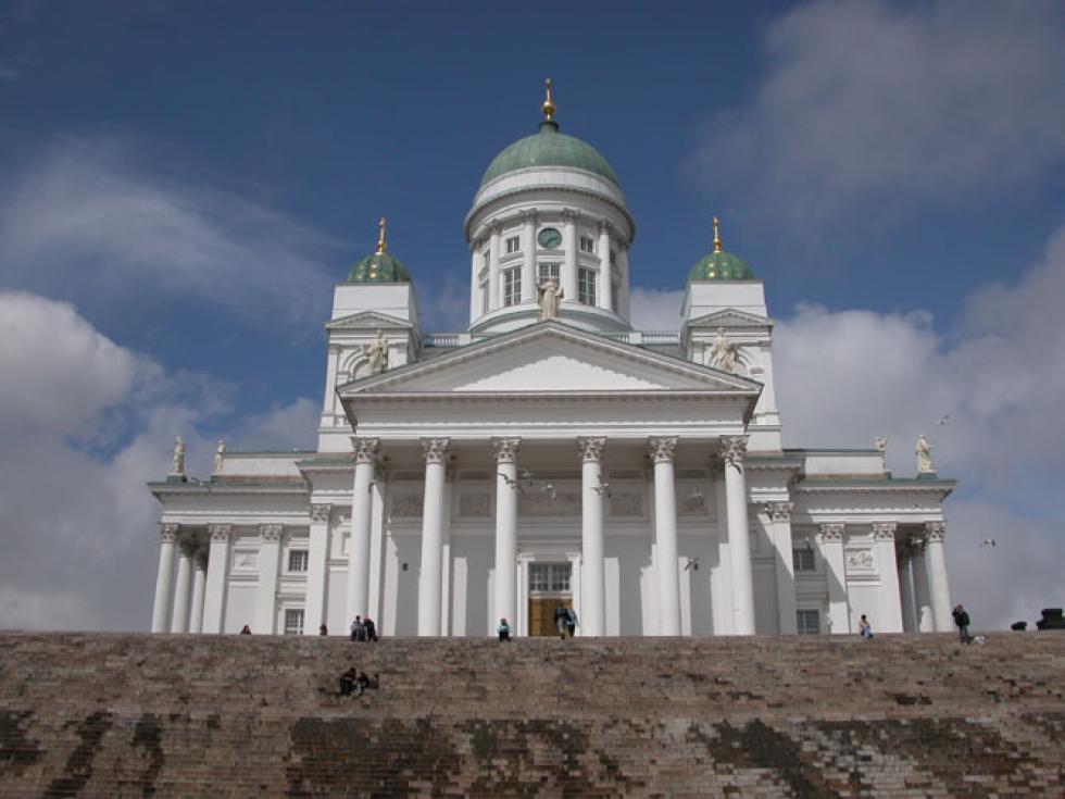 Fra sentralstasjonen går vi direkte mot hovedstadens kjennetegn, Domkirken, som troner flott over på den store plassen – Senatstorvet, ble bygget i årene 1830-1852, og er uten tvil den mest imponerende bygningen i hele byen – spesielt mot en blå himmel.Vi har hatt en del regn, men mens vi går rundt i byen, holder værgudene hånden over oss. Det gjør den ikke dårligere å se på. Midt på plassen står en prektig statue av tsar Alexander II.