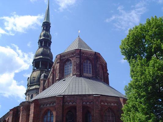 Vi går langs elven Daugave for å komme opp til St. Peters kirken, som sto ferdig første gang i 1209 i tre. Ca. 200 år senere ble kirken bygget i sten. Kirken har en voldsom historie bak seg, fordi den er blitt ødelagt så mange ganger. Sist under 2. verdenskrig, da tyskerne i 1941 bombet klokketårnet. Kirken, som den ser ut i dag, sto ferdig i 1973.