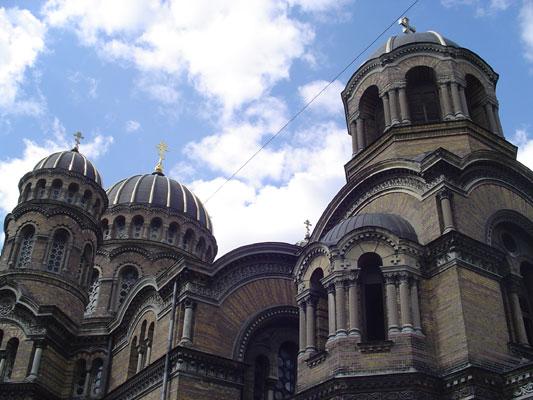 Krievu pareiticigo katedrale er Den Russisk-ortodokse katedralen og den er absolutt verdt et besøk. Vi går stille rundt i katedralen, som er et særsyn og en helt spesiell opplevelse. To sortkledde middeldrende kvinner ligger på knærne og renser alterteppene for hånd. To andre er i ferd med å pusse en av de store gull-lysestakene. Overalt er det levende lys, røkelsespinner og levende blomster. Folk kommer og går og deltar sporadisk i messen, som virker som noe man kan komme og gå til, akkurat som man lyster. Ingen kommenterer, at vi står der så lenge og betrakter alt det som foregår. Det er en helt spesiell atmosfære, som skal oppleves. Man må ikke ta bilder der inne, så husk å gå inn dit og opplev det for deg selv.