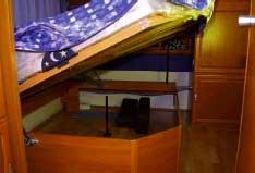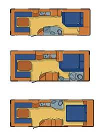 Kjøkkenet har to lukkede overskap, et overskap med dobbelt glassdør og et langt halogenlys over kjøkkenbenken. Under glasskapet er det montert to smale hyller. Kjøkkenbenken består av fire bluss, oppvaskkum og noe ledig plass. Lengden 170 cm er noe over gjennomsnittet i vogner med innvendig lengde rundt seks og en halv meter. Under kjøkkenbenken finner du to skap og en bestikkskuff. Alt med god og romslig plass. Inneholder et dreibart Thetford toalett, vask og eget dusjkabinett for dusjen. I taket er det montert en lufteluke over vasken og en mindre luftesluse i dusjen. Badet er romslig og har innredning i en blanding av tre og plast.