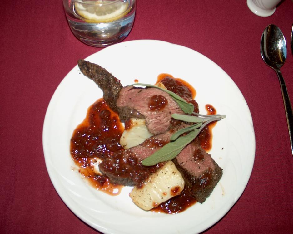 Maten om bord er utsøkt. Vi spiser i den engelskdesignede restaurantvognen. Den ligner noe fra 1800 tallet. Smakfull rød velour, gullkantede lamper og prikken over i'en, store panoramavinduer, der variert og storslått australsk natur glir forbi. Vi smaker for første gang kenguru - det kan virkelig anbefales. Det minner mye om vilt.