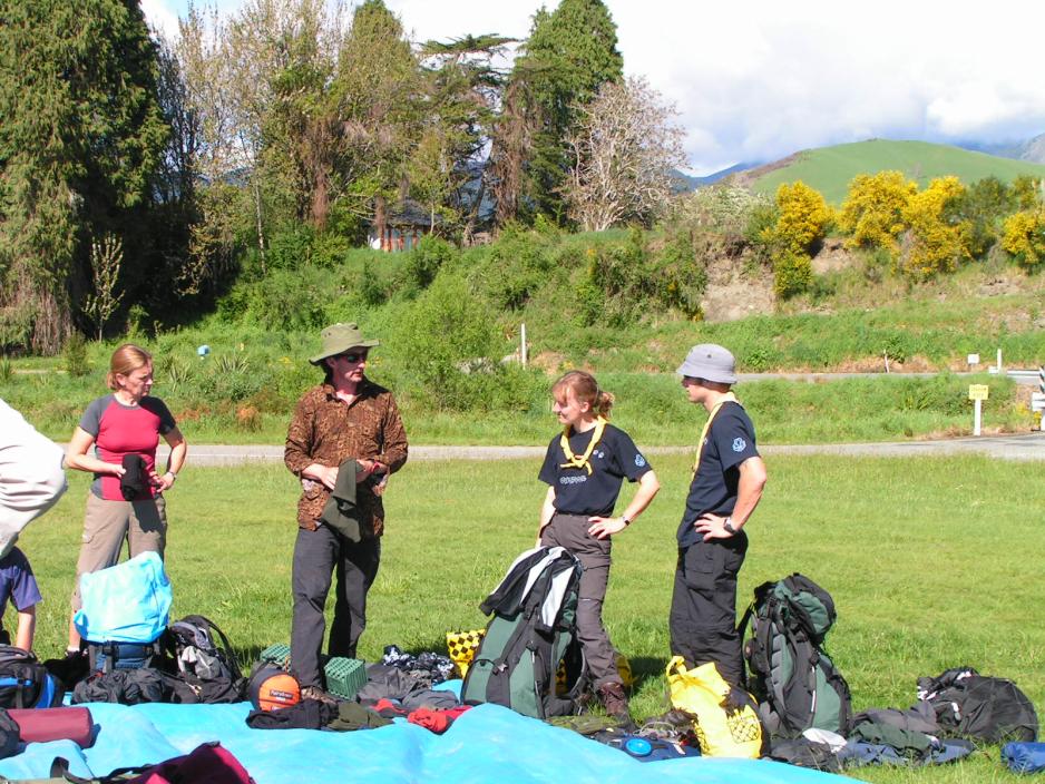 Chris har allerede foretatt den nødvendige provianteringen til de første dagene, slik at vi ikke behøver å ”sløse bort” tid på å gå og handle, men kan sette kursen direkte mot Kahurangi National Park i den nordvestlige delen av Sydøya.En av gruppens jenter har glemt kameraet sitt på fiskerestauranten i går kveld og det er med en viss skepsis, at vi stopper for å se, om hun skulle være så heldig, å finne det igjen. Det var jo andre mennesker på restauranten, da hun forlot den i går, og tross adskillige forsøk på å komme i telefonkontakt med restauranten, har det ikke lykkes.Restauranten er stengt, men etter litt banking på døren blir den lukket opp! Jeg og mine øvrige reisefeller sitter avventende i bilen og tipper på funnet/ikke funnet. Selvfølgelig vil det være ergerlig å miste kameraet sitt og ikke minst biidene sine. Så kommer hun ut av restauranten med et stort smil og vinker med kameraet i hånden til oss. Jo, kelneren hadde funnet kameraet og lagt det til side. Jamen, sånn er de fleste newzealendere….Fra Nelson følges veien langs kysten nordover, forbi Motueka og herfra inn i landet. Etter et par timer er vi fremme ved et sted, der tilhengeren kan parkeres. Den er for stor/tung til å ta den med lengere opp i fjellene, der fotturen skal begynne.Chris brer en stor presenning ut på gresset og legger den provianten, som vi skal ha med på turen, på den. Deretter tømmer han ryggsekken og viser oss, hva han tar med. Kun det aller mest nødvendige. ”La nå være å ta med for mye” advarer han oss, ”Dere vil angre på å skulle dra på alt det unødvendige. Telt skal vi ikke ha med. Vi overnatter i det fri, nesten under åpen himmel”.Heretter pakker vi det tøyet samt liggeunderlag og sovepose, vi skal ha med, og så skal maten fordeles. Hver især tar det, de mener de skal ha/bære, og i tillegg til mat skal vi også ha med kokeutstyr inkl. kokeapparat og bestikk. Det tar bare et øyeblikk, så er alt fordelt.Den bagasjen vi ikke skal ha med på turen, er låst inn i tilhengeren, som er parkert på et forsvarlig sted.De fulle ryggsekkene legges inn i bilen og vi fortsetter nå det siste stykket opp til starten av The Flora Saddle Track. Herfra skal vi gå i en sirkel og vil komme tilbake i morgen ettermiddag.