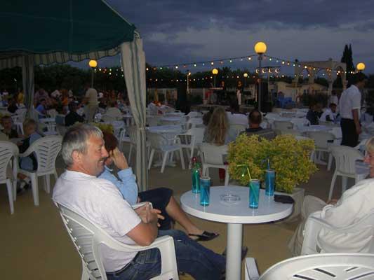 Vi kjørte til Crest, der løpet skulle komme igjennom i morgen, for å spise. Vi fant en velbesøkt italiensk restaurant med uteservering. For øvrig kunne vi bare finne italienske restauranter og pizzeriaer, som var åpne. Vi var imidlertid litt skeptiske med hensyn til hygienen, for duken var en voksduk, som ikke var tørket av de siste par dager (uker?). Det kom en middelaldrende mann sjenende bort til bordet med menyen. Vi var alle enige om, at han var sørpe full. Vi ba om å få vasket av duken, og han gjorde den ren veldig langsomt og omstendelig. Vi fikk bestilt, og han sjanglet tilbake inn i restauranten. Maten vi fikk, var usedvanlig god, så vår skepsis ble gjort til skamme. Imidlertid kunne vi ikke la være med å more oss over den berusede kelneren, som hele tiden måtte støtte seg til bordene, når han gikk fram og tilbake. Da vi kom tilbake til bilene, kunne vi se at temperaturen kl. 22.00 stadig var 32 grader.