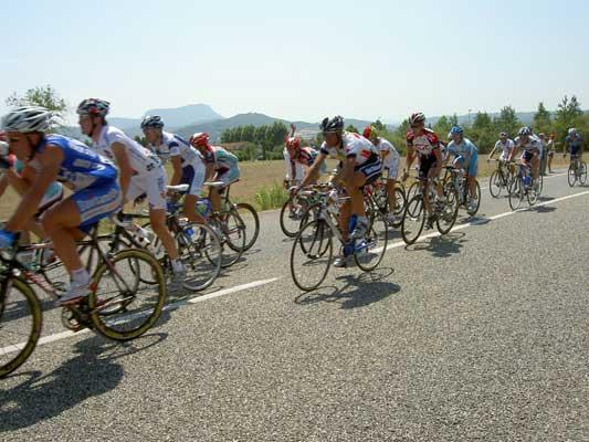 Etter en drøy time kjørte vi videre. Det var mange muligheter til å kjøre inn mellom fjellene, og vi kjørte litt på måfå mot Nyons. Nyons er kjent for lavendel. Da vi nærmet oss Nyons, kom vi igjennom fler og fler områder med lavendelmarker oppover fjellsidene, og det luktet vidunderlig.Selve området må være særdeles fruktbart. Vi kom gjennom olivenlunder, aprikosplantasjer, der var lavendelmarker, solsikkemarker, vinmarker og litt lenger nordover var det en masse hvitløksmarker. Dette var Frankrike, som man ser det på prospektkort. Det var en veldig flott tur. Da vi kom til Nyons, tok vi en pause. Vi gikk litt rundt og så på byen, men da det var mandag, var det hviledag. Bare store supermarkeder hadde åpent. Så vi kjørte videre og kom nå inn på en del av den veistrekningen, som touren skulle kjøres på. Vi fulgte strekket et langt stykke og svingte så av, hjem mot campingplassen.