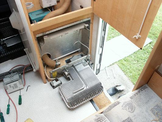 Det finnes de som har lykkes å montere en Ultraheat gjennom bare å bøye pannekroppen litt forover, men i de aller fleste tilfeller må man ta bort hela pannekroppen. Begynn med å stenge av hovedkranen på gassflasken, og deretter løsne gasstilkoblingen under campingvognen/bobilen.