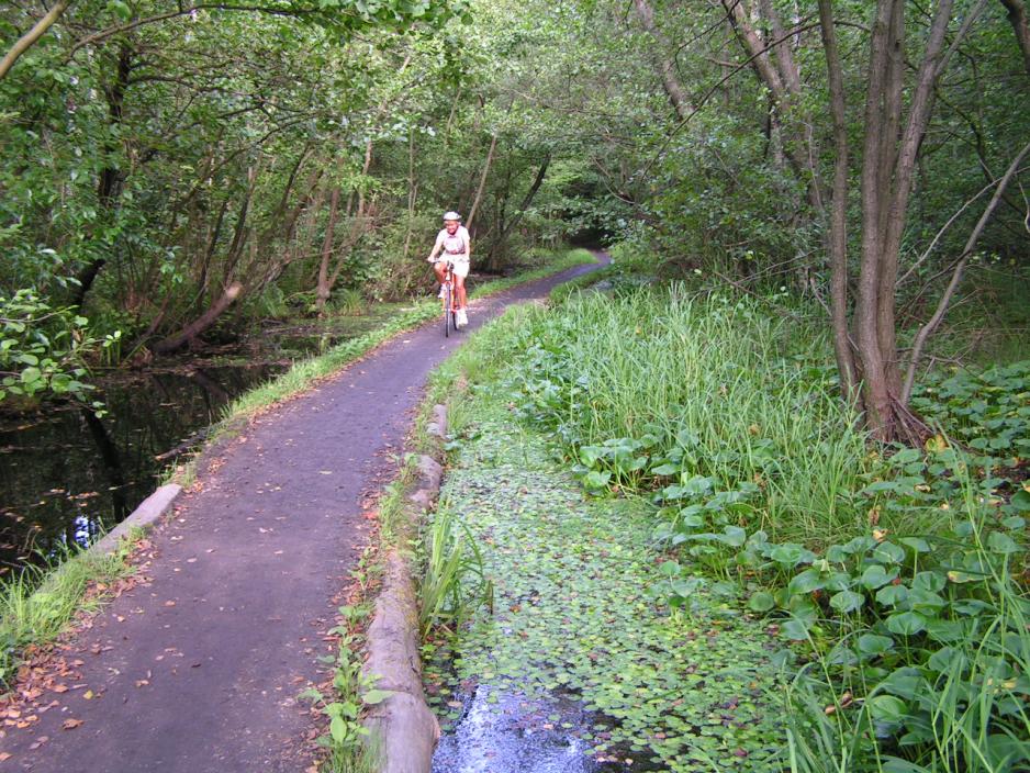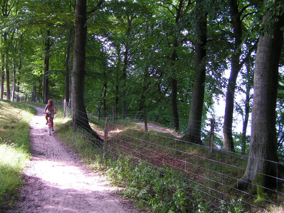Vi sykler på stien nord for skogen og videre fram til Bastrup Sjø og følger Ganløsevei og Bastrupvei gjennom de små landsbyene Bastrup og Nymølle.Langs elven mot Klevadshus er det ikke mulig å sykle, til det er stien for smal og kronglet.Ved Drive-In Kinoen ligger en Put & Take sjø, der du mot gebyr kan fiske i 2, 4 timer eller hele dagen.