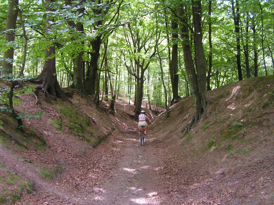 Stien gjennom Frederiksdals skog er mer ridesti enn sykkelsti. Det er imidlertid tydelig merket, hvor det er gangsti og hvor det er sykkel/ridesti. Også her må vi trille syklene en del av strekningen.Her høyt oppe over vannflaten fornemmes istidens enorme innvirkning på dannelsen av hele geografien. Vi er 30 meter oppe på skrenten over Furesø – Danmarks dypeste sjø – som er 38 meter dyp.Hele Mølleådalen ble skapt for mer enn 12.000 år siden under istiden, da hele området var dekket av is. Under isen dannet det seg en tunnel av smeltevann og det var dette smeltevannet og den etterfølgende erosjon, som har skapt området.Senere er det bygget demninger for å kunne utnytte vannkraften og det er gravd kanaler og etablert veier.
