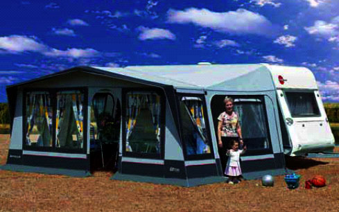 Du kan selv velge om du vil utnytte teltets fulle størrelse, eller flytte inngangspartiet inn. Det ene frontpanelet har dør og ett/to faste vinduer. Det andre panelet har to/tre (avhengig av størrelse på teltet) faste vinduer. Inngangspartiet kan settes både på venstre og høyre side. Det er ventilasjon i øvre del av panelet. På bildene vises en modell som har blendingsgardiner. Teltene som selges i Norge leveres uten blendingsgardiner. Apollo leveres i A-mål fra 850 til 1.235. Pris fra 17.000 kroner til 22.900 kroner avhengig av størrelse.Ytterligere info finner du på www.inaca.com eller www.maxfritid.com