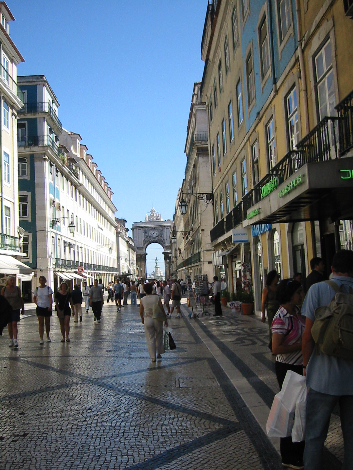 Midt på plassen står en 23 meter høy marmorsøyle. Når man snur seg og ser den motsatte vei finner man et av byens hovedstrøk. Vi spaserer ned langs hovedgaten, der man i enden ser en triumfbue oppført i barokk-stil, og bak dette byggverk ser man ut over en elegant plass ned mod elven. Virkelig vakkert.