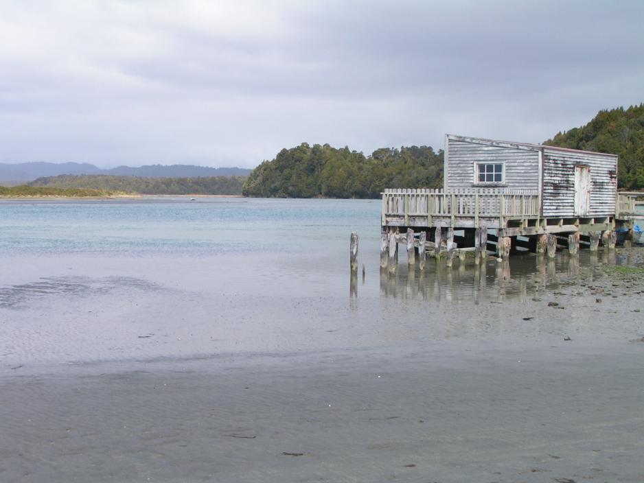 Vi har hatt en deilig dag på lagunen og mens vi har padlet rundt i kanalene har tidevannet snudd. Nå strømmer havvannet med stor kraft inn i lagunen og vi skal utover! De siste reservene tas ut av armmusklene og vi padler igjen lengst inn mot bredden – der strømmen er minst mulig.Uansett strømforhold har vi fått ”strenge” instrukser om ikke å padle forbi det gamle havnehuset rett før lagunens utløp i havet. Vi skal nå bredden før huset ellers kan det bli farlig. Det Tasmanske Havet buldrer løs på vestkysten og det er ingen spøk, å komme ut i åpent hav.