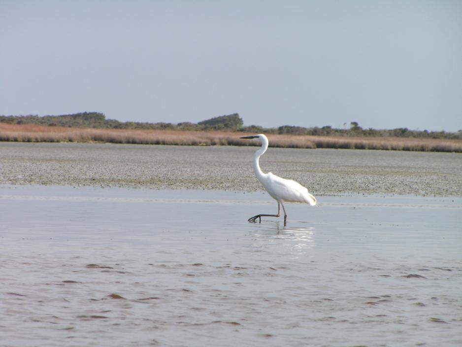 Her ute i seilrennen er det bare få meter inn til bredden, som beskytter lagunen mot havet og her ser vi for første gang den veldig sjeldne hvite hegren (white herons). I den nordlige enden av lagunen finnes en koloni av disse sjeldne fuglene og det opplyses, at det nå bare finnes omkring 150 par.Lenger ute kan vi se mange vadefugler og bl.a. sorte svaner og de flotte paradis ender.