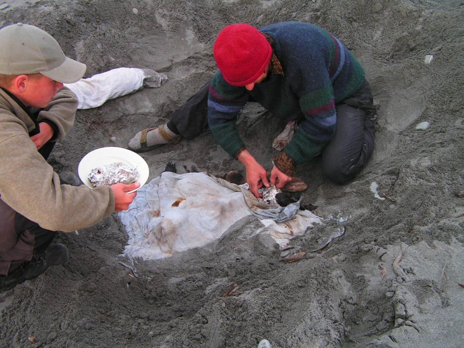 Hele ettermiddagen kan vi slappe av – og det er det behov for. Chris tilbereder kveldsmat for oss, idet vi skal ha en tradisjonell ”hangi” - maorienes måte å tilberede maten på. I et hull i sanden nede på stranden tennes et bål og når der er god varme, legges stein på bålet. Når disse er varmet opp legges kjøtt og grønnsaker innpakket i folie ned på stenene og det hele dekkes av våte håndklær og dekkes til med sand.Etter noen timer er maten ferdigkokt – nesten etter samme prinsipp, som når vi setter risengrøten i sengeenden, for at den skal koke ferdig.