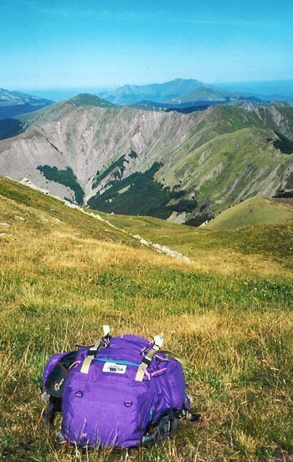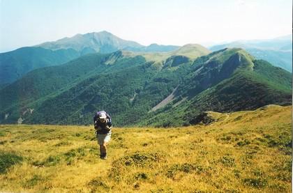 Neste dag fortsetter vi opp gjennom skogen og kommer raskt opp i høyden, der det er fritt utsyn over de omkringliggende myke åsene. Vi fortsetter på ryggen av høydedragene og befinner oss på toppen av Toskana’s høyeste fjell, Monte Prado, 2054 moh. Været er praktfullt, ikke en sky, helt vindstille, og vidt utsyn til alle kanter. Her spiser vi de medbrakte brødskivene, som kroverten har smurt til oss. Vi følger fjellkammen og avslutter dagen med en bratt nedstigning til Battisti.