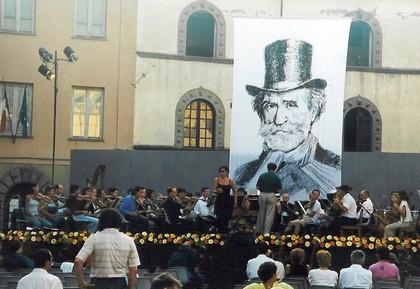 At det er så voldsomt fuktig/varmt skyldes antagelig den enorme tordenbygen, som vi opplevde i byen Castelnuovo di Garfagnana i går ettermiddag, rett etter at vi var kommet. Vi hadde nettopp satt fra oss ryggsekkene på hotellet og skulle ut for å kjøpe turkart over Garfagnana-trekking-ruten. Så brøt uværet løs med et kjempesmell, som runget i de smale gatene. Regnet strømmet ned og vannet fra takrennene sto i en vannrett stråle utover fortauet. Det buldret og braket, som om lynet slo i bakken rett bak oss. Det var visst én gang, i Innsbruck, at jeg har opplevd noe lignende!. Det var ikke akkurat denne værtypen jeg hadde sett fram til her i den italienske sensommeren. Men det hele var heldigvis over i løpet av en time. For etter kveldsmaten var det offentlig Verdi-konsert. Å starte ferien med tilfeldigvis å dumpe rett opp i et arrangement for å feire Mesteren, er det man må kalle flaks. Konserten startet kl. 21.30 og varte et par timer. Mange dyktige solister med fullt orkester - og i tillegg helt gratis. Det var litt av en opptakt. Alle sitteplasser var allerede opptatt da vi kom. Byens borgermester og den øvrige sosieteten var der. Men også den vanlige musikkelskende italiener - selvsagt med barn. Italienerne kan sin operahistorie, enten det er Verdi, Puccini eller Danizetti. Jeg tror de får det inn med morsmelken!