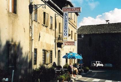 Noen av de yngre i turgruppen har gått litt i forveien og da jeg omsider får slept meg fram til byen kan jeg ikke se de andre. En eldre italiener sitter ved et av bordene på en fortausrestaurant og jeg spør - på mitt gebrokne italiensk: Albergo Sant Pellegrino? Si, Si! - sier han. «Hvor er hotellet» spør jeg igjen. «Ja, Ja!» svarer mannen. Jeg blir ikke noe særlig klokere og vet ikke riktig hva jeg skal foreta meg. Jeg går over på den andre siden av veien, men det er helt tomt i restauranten. Så inn i baren der den vennlige kroverten smiler og ønsker meg velkommen og i neste øyeblikk sitter jeg med en kald øl sammen med mine kamerater ute på en balkong bak baren med fin utsikt over skogen vi kom opp gjennom, mens vi venter på de siste i gruppen.