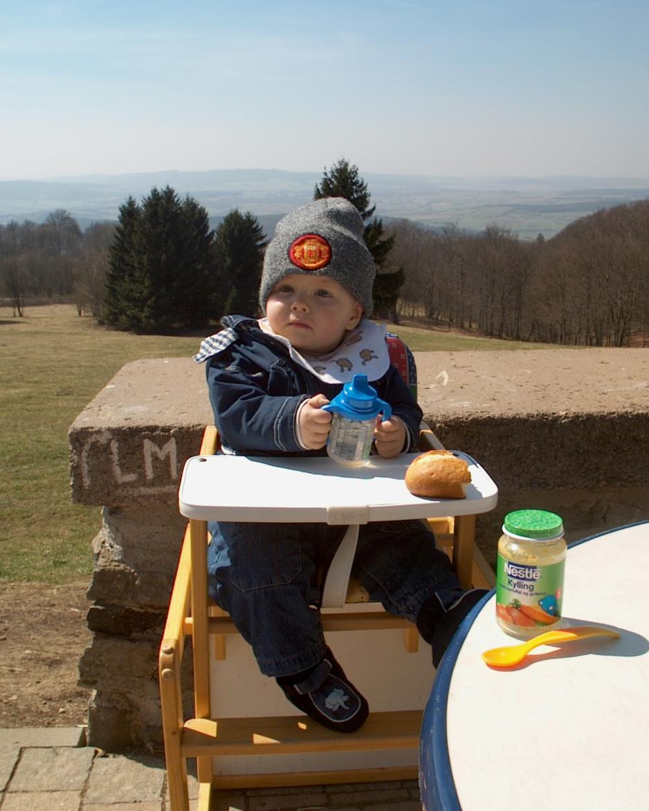 På vår stopp litt nord for Kassel spiste vi lunsj på en fjellrestaurant i 1.000 meters høyde. Vi ble ønsket velkommen av ”Die Mutter”, som straks fant barnestol og lekesaker til Mathias.Hadde vi ikke selv hatt med mat til han, hadde hun helt sikkert tilberedt noe spesielt til guttungen. En herlig service og godt å møte folk, som er så glad i barn. Det er nå engang de fleste.