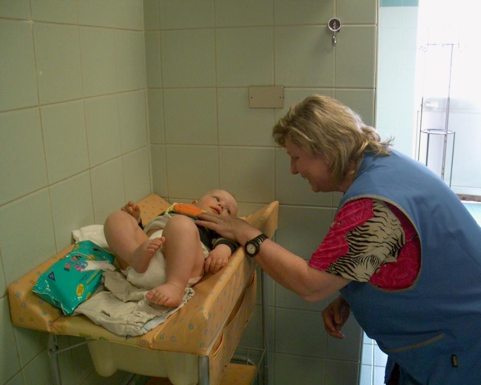Da vi kom til Italien fandt vi mindst lige så gode forhold på både restauranter og tankstationerne. På et af vores første stop lidt nord for Verona, hvor vi spiste frokost, måtte ”La Senora”, der passede dametoilettet lige bruge et par minutter på at lege med Mathias. Det var ikke meget vi kunne tale om, men ”gagagluglu” og et smil er også meget internationalt.
