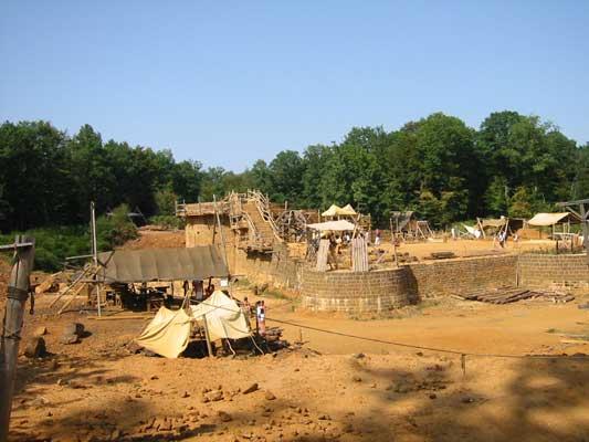 De 45 franske ansatte som går rundt i påkledning fra middelalderen, håndterer og bearbeider daglig store steinblokker, tykke eikebjelker og glødende metall til dette fantastiske byggverk som gjør det til en av Frankrikes mest besøkte turistattraksjoner, en levende middelalder byggeplass som årlig besøkes av mer enn 200.000 mennesker og som dermed er med på å virkeliggjøre denne fantastiske prestasjon i vår moderne tidsalder.Byggingen ble påbegynt i 1997 og nå i år 2004 er borgen vokst til ca 5 meters høyde, det går langsomt, men man regner med at hele byggverket står klart til innvielse i året 2023.I umiddelbar nærhet finner man campingplassen "Camping des Jourmiers" ved en liten sjø, et sted som kan anbefales for flere dagers opphold.
