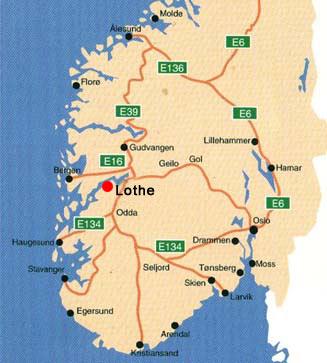 ReiseruteLothe Camping ligg 5 km frå Utne ferjekai mot Jondal.Ferjer frå Utne-Kvanndal og Jondal-Tørvikbygd går kvar time.Det går og ferje mellom Kinsarvik og UtneBergen - Lothe2,5 tHaugesund - Lothe3tGeilo - Lothe2tOslo - Lothe5tOdda - Lothe50 min