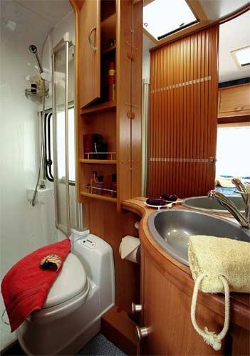 Som på kjøkkenet er det også her tre hovedingredienser, vask, do og dusj. Vasken har ingen betenkeligheter med å bruke. Doen derimot er det mange som kvier seg for å ta i bruk. Men det er bare en vanesak (både å bruke og å tømme den). Dusjen kan være et større problem, noen dusjer er innrettet kun som en nøddusj. I de senere årene har utførelsen stadig blitt bedre og separate dusjer mer vanlig. Bliver det en vane å benytte bilens dusj kan du virkelig reise uavhengig.