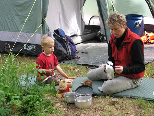 Mathias er tre år, og har bare sovet i telt noen ganske få ganger. Vi har ”øvd” oss hjemme i hagen, og er nå klare for den første kanoferien sammen. Utgangspunktet for turen er Silkeborg Sø Camping, som ligger få minutters gange fra sentrum og med egen brygge i Silkeborg Langsø.