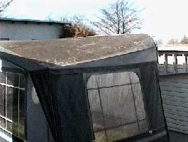 Tommy brukte bare én omgang Alpha på teltet. Deretter ble hele teltet etterimpregnert både innvendig og utvendig med AquaTex, og ikke minst glidlåsene som var litt "tørre" ble frisket opp med impregneringen. Impregneringen er også bra for fargen som bildene viser.Vil man være ekstra god mot forteltet sitt før det legges bort for vinteren så legger man hvitt lakenstoff mellom vinduene og tar av gummiringene.Å la teltet stå ute i tre år på rad er ikke noe som Isabella anbefaler, dette var bare en test på hvor effektiv Alpaha 123 er.
