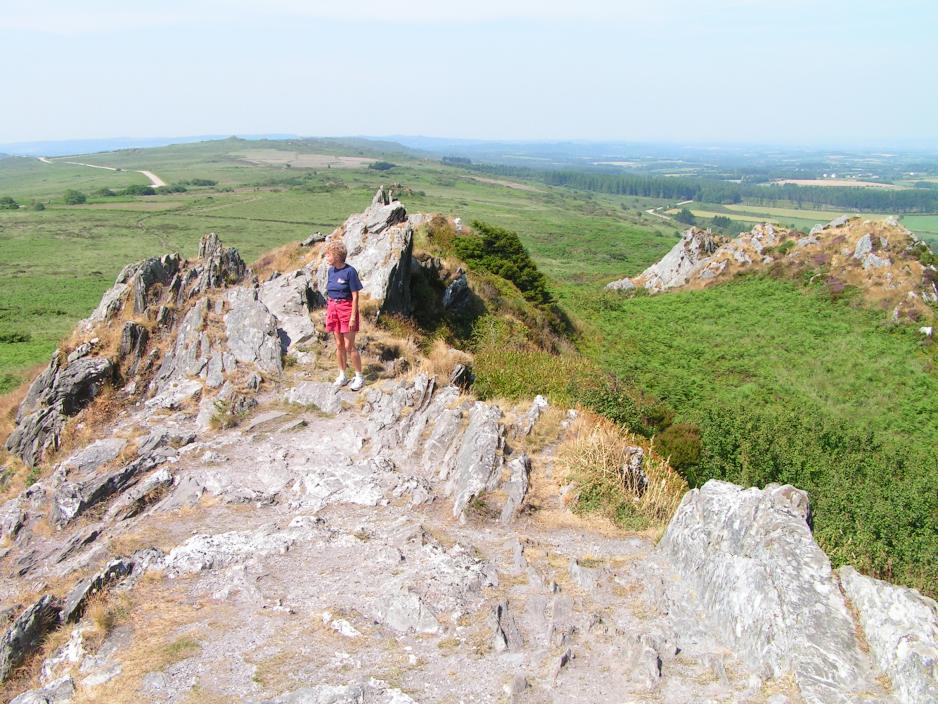 På ruten sydvestover svinger vi inn over et høydedrag, parkerer bilen ved Roc’h Trevezel og begir oss ut i dette flotte terrenget. Vi følger den anviste ruten (av hvilke det er flere i området) opp gjennom den blomstrende lyngen mot toppen av høydedraget, der klippene flere steder ”springer” ut av bakken. Fra høydedraget er det vid utsikt til alle sider. Et ideellt sted for å spise lunsj.Byplanleggere, landskapsarkitekter og hvem som ellers har vært med på å bestemme, at veien nettopp skal følge høydedraget, får en varm tanke. For denne ruten er virkelig flott.Litt lenger fremme støter vi på enda et høydedrag og svinger opp på Montagne Saint Michel. På toppen, 380 meter over havet, ligger en liten stenkirke med utsikt til den store sjøen nedenfor.