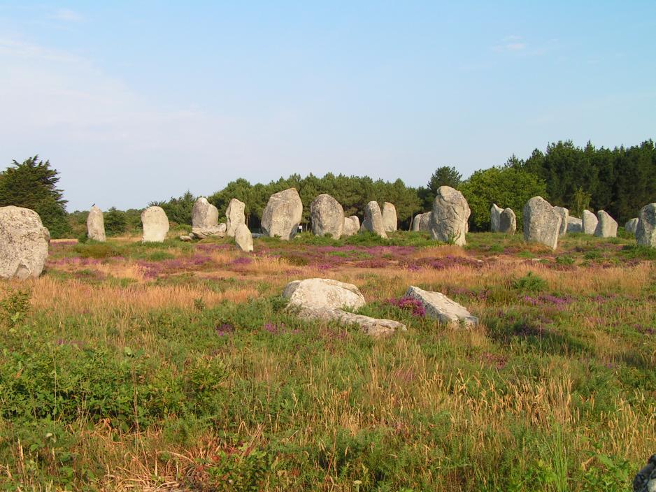 Vi har overnattet på en ganske liten campingplass Camping des Ombrages i Kerlann, som ligger et par kilometer fra Carnacs berømte bautastein. Campingplassen har en del villavogner med små hager hovedsakelig for langliggere, men her er omtrent 12-14 ledige oppstillingsplasser hver på ca. 6x6 meter med høy hekk rundt. De sanitære forholdene kan ikke bli bedre.Det er bautasteinene vi har kommet for å se nærmere på. Mer enn 4000 steiner er reist for mer enn 7000 år siden. Man anslår at de eldste bautasteiner er reist ca. år 5000 før Kristus. Hele komplekset strekker seg over 4 km og er inndelt i forskjellige navngitte grupper: Le Ménes, Toul-Chignan, Kermario, Le Mani, Kerslescan samt Le Petit-Ménec.Hva disse steinsettingene har vært brukt til er fortsatt en gåte. Gravplass – tilbeding av guder – kalender – solur (i flere områder står steinene i rekker øst-vest) – offersted, man vet det ikke! Man mener imidlertid at hele området har vært sammenhengende og at de manglende steinene mellom områdene gjennom århundredene er blitt fjernet og brukt til andre formål.
