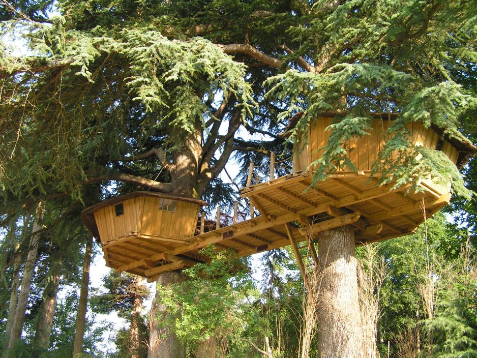 Det mest spektakulære er imidlertid muligheten for å campe i de såkalte tretopphyttene plassert opp til 13 meter over bakken. To forskjellige steder er det grupper av tretopphytter inne i skogen, der man kan få lov å bo. Etter en grundig instruksjon iføres man hjelm samt sele med karabinkroker. For å komme opp til hytten må man klatre opp i et tre via en stige. Herfra er det et par hindringer på en klatrebane, som må passeres, før man kommer fram til tretopphytten. En utfordring, men ikke større enn at de fleste saktens kan gjennomføre turen. Utvendig er de kledd med tre og innvendig er de innredet som et alminnelig hus med seng (evt. myggnett), bord og stoler samt toalett. Det er imidlertid ikke innlagt vann og el og her er det mulig å bo i nærkontakt med naturen.Vi følger en gruppe, som er iferd med å ”innta” sin tretopphytte og de er alle i 50-årene. Det er uhyre populært å overnatte på denne måten og tretopphyttene er utsolgt lang tid i forveien, så vil man prøve dette helt unike konseptet, bør man bestille i god tid. Etter den første instruksjonen og klatring opp til tretopphytten skal man på egen hånd kunne komme opp og ned via den anviste ruten.