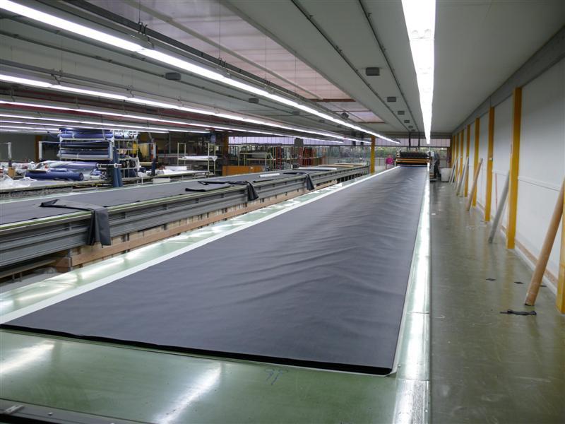 Stoff og andre materialer til produksjon av fortelt ankommer til Vejle på store og tunge ruller, som bare kan flyttes med truck. Det er ca. 4.500 m2 lager i Vejle.