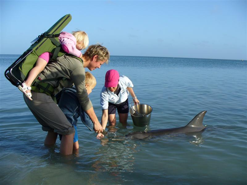 Shark Bay, som også nås på en lang dagsreise fra Perth, er et førsteklasses utgangspunkt for å se mange av Australias ville dyr. Både på land og til vanns. Vi går først og fremst for å se delfinene, som hver morgen nærmer seg land for å få fisk av menneskene. De er 100 % ville, men har siden det var mange fiskere i bukten, vent seg til å få fisk på denne stranden. Fiskerne er borte nå og hele bukten er nasjonalpark. Det betyr i dag, at turister kan oppleve delfinene på nært hold og kanskje være den heldige, som velges ut til å gi dagens fisk til en av dem. En herlig og lærerik opplevelse for både barn og voksne. Den er for øvrig gratis, når man har betalt for å komme inn i nasjonalparken.Fra Shark Bay går det også flere båtturer lengere ut i bukten, der man bl.a. kan se haier og sjøløver.