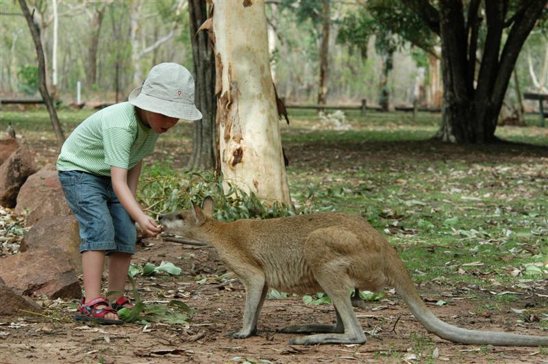 Vi har tidligere reist i Australia og det er helt klart naturen og det ville, forskjellige dyrelivet, som fascinerer oss mest. Tidligere reiser til landet ”down under” har vært uten barn. Denne gang har vi med Mie på to år og Mathias på fire. Det kan umiddelbart gjøre det vanskeligere å få de uforglemmelige opplevelsene med ville dyr, fordi så små barn av naturlige årsaker ikke har forståelse for å skulle vente eller være stille. Men, med god planlegging, som først og fremst består i å tilrettelegge opplevelsene, slik at barna er friske og uthvilte, tilført små ”belønninger” i form av snacks og frukt, hjelper godt på veien. Husk også f.eks. malebok til ventetiden. Jo eldre barna er, jo lettere kan man snakke om det som venter og forberede barna. Øv også gjerne på turer hjemme f.eks. i det fri med fugler og rådyr eller ta en tur i en dyrepark.