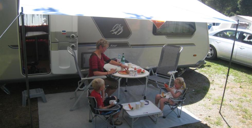 Været er strålende og når man har kjørt halve dagen, så er det bare en ting som gjelder, når man kommer fram, og det er på hodet i bassenget. Så får campingvogn være campingvogn… Campingplassens svømmebasseng er uten tvil et stort aktivum, fordi man er langt fra både sjø og hav.Den er barnevennlig og har masser av artige aktiviteter for både store og små.