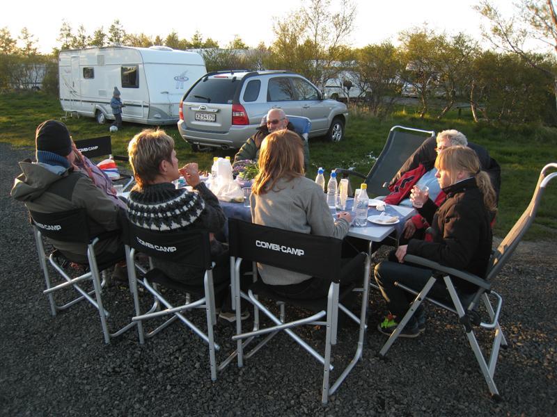 Det er vår siste kveld på Island og været er flott og for en gangs skyld også varmt, slik at vi kan sitte ute uten å ha på vintertøy. Det bor bare noen få på campingplassen i tillegg til oss, men det er fred og ro og barna kan alltids løpe rundt.I morgen er det vår siste dag på Island, men heldigvis skal vi først ta båten om kvelden, slik at vi har hele dagen til opplevelser i området. Vi har også en overraskelse til Heidi og Linda, som nå har vært nesten 14 dager borte fra sms’er, venninner og strykejern. Det er gått over all forventning.På gjensyn!