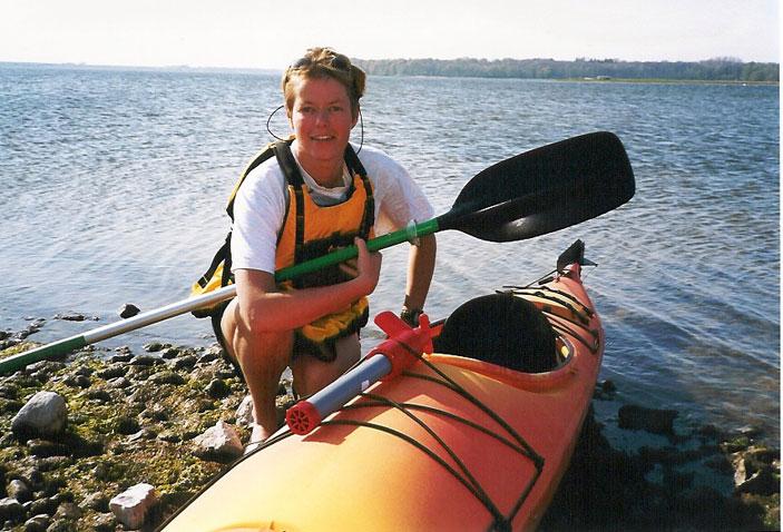 Vi skal også ut å leke, men det blir i våre medbrakte kajakker. De settes uten problemer på vannet rett foran campingvognen, og i løpet av få minutter, sitter vi med vann til hoftene og glir gjennom det stille vannet. Solen steker og det er lagt opp til en deilig tur langs kysten. Vi kommer helt opp til Haderslev Fjord og passerer også forbi Årø, der vi går i land på sydkysten. Langt borte fra larm og bråk spiser vi våre medbrakte matpakker og tar en høneblund på stranden, før vi padler tilbake til vårt lille hjem på campingplassen. Armene er litt slitne, men det er god trening for kroppen og en fantastisk naturopplevelse.