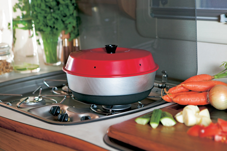 Messebesøkerne fikk smake nybakt bringebærkake og gulrotkake og lære seg hvordan de kunne bake og lage ovnmat uten å ha en fast ovn i campingvognen eller campingbilen. Den finurlige lille ovnen setter man nemlig rett på komfyren og den fungerer like bra på gasskomfyr som på en elektrisk plate. Denne løsningen satte messebesøkerne stor pris på og allerede lørdag ettermiddag var alt utsolgt.Fritidsovnen Omnia finner du hos velsorterte campingvognforhandlere og koster ca. 380 kr.