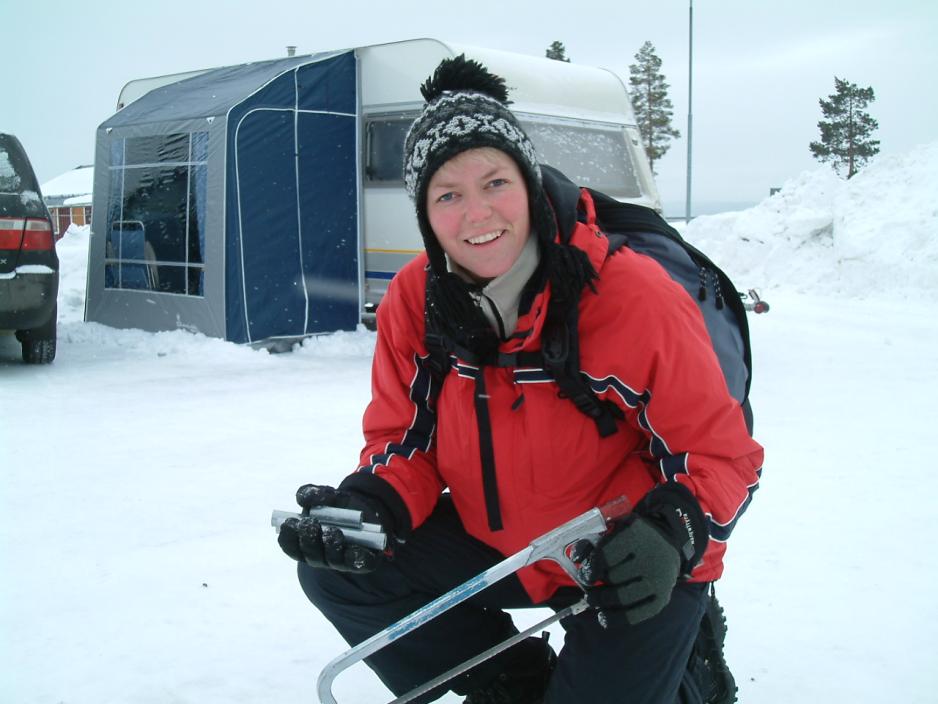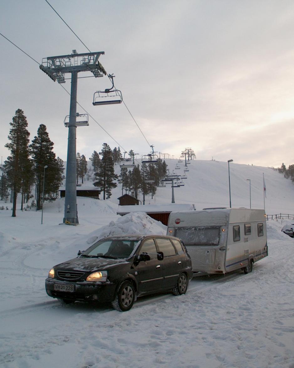 Vi ankommer sent om kvelden og stiller bare opp campingvognen, slik at vi kan krype til køys. Vi har satt på varmen om ettermiddagen, slik at campingvognen er deilig og varm i motsetning til de 10 minusgradene, som det er utenfor. Stivfrosne ledninger henger og svaier i vinden rett over campingplassen og jeg kan nesten ikke vente på at en ny dag skal begynne.