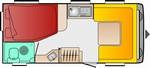Selv om det er deilig å være ute i naturen, er det også hyggelig å være hjemme i campingvognen – en Bürstner 455 TS. Vi har god plass med dobbeltseng og baderom i bakenden. Garderobeskap og kjøkken med alle fasiliteter midt i vognen og så en hyggelig stue i den fremre delen.
