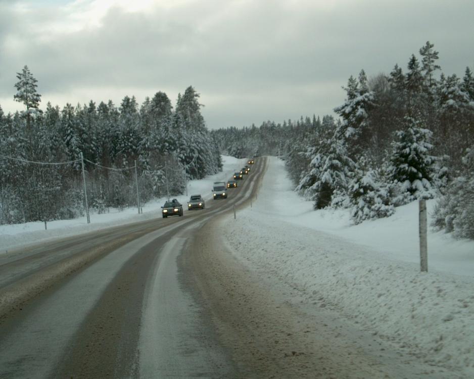 Her ses veien fra Sälen til syd for Karlstad. Deretter er veiene fine og tørre.