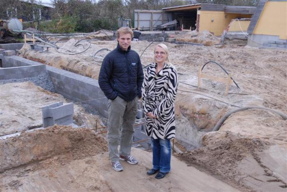 På bildet ses Steen Slaikjær og Lene Grønlund foran det nye byggverket.